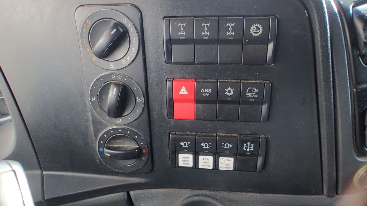 | Ausstattung: | - Schalt-Getriebe G 141-9/14,57-1,0 – mit 9 Gängen - Tempomat - Klimaanlage - CD-Radio, Bluetooth-Freisprechanlage - Sonnenblende - Dachluke manuell - Fensterheber elektrisch - Sonnenblende außen - Rundumleuchten auf Fahrerhausdach - Multifunktionslenkrad ... u.v.m. |