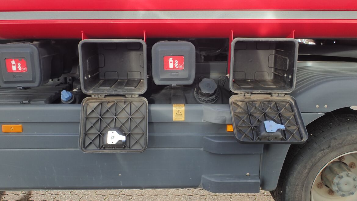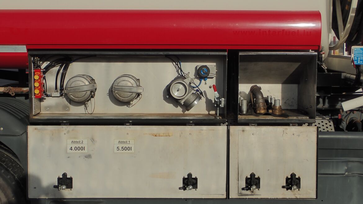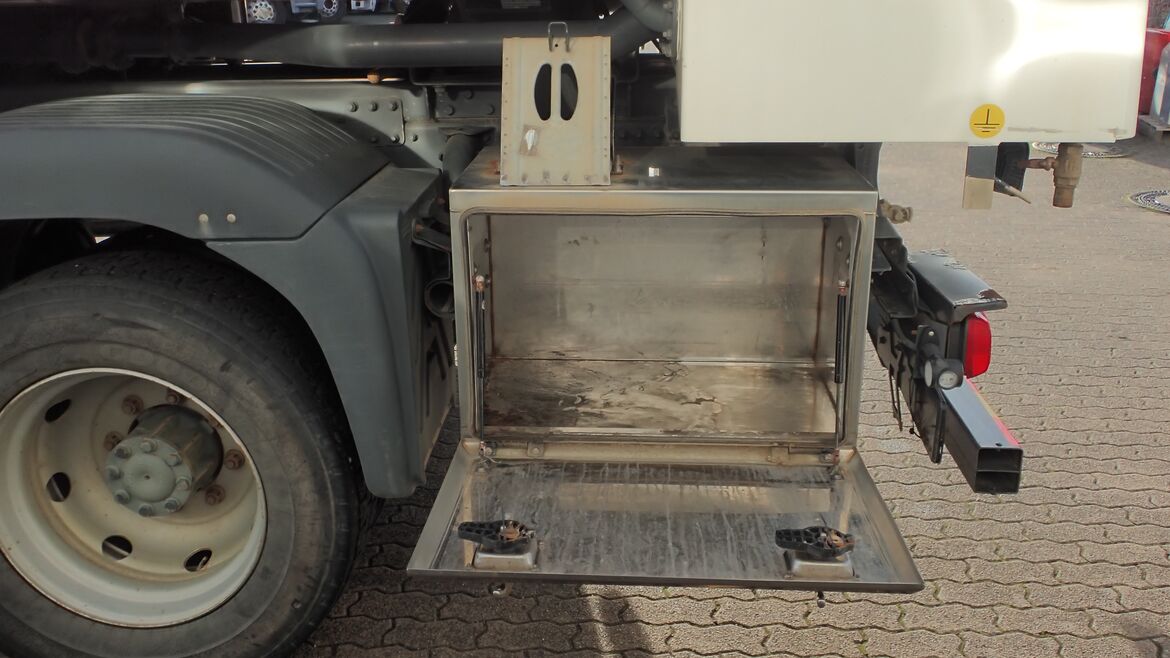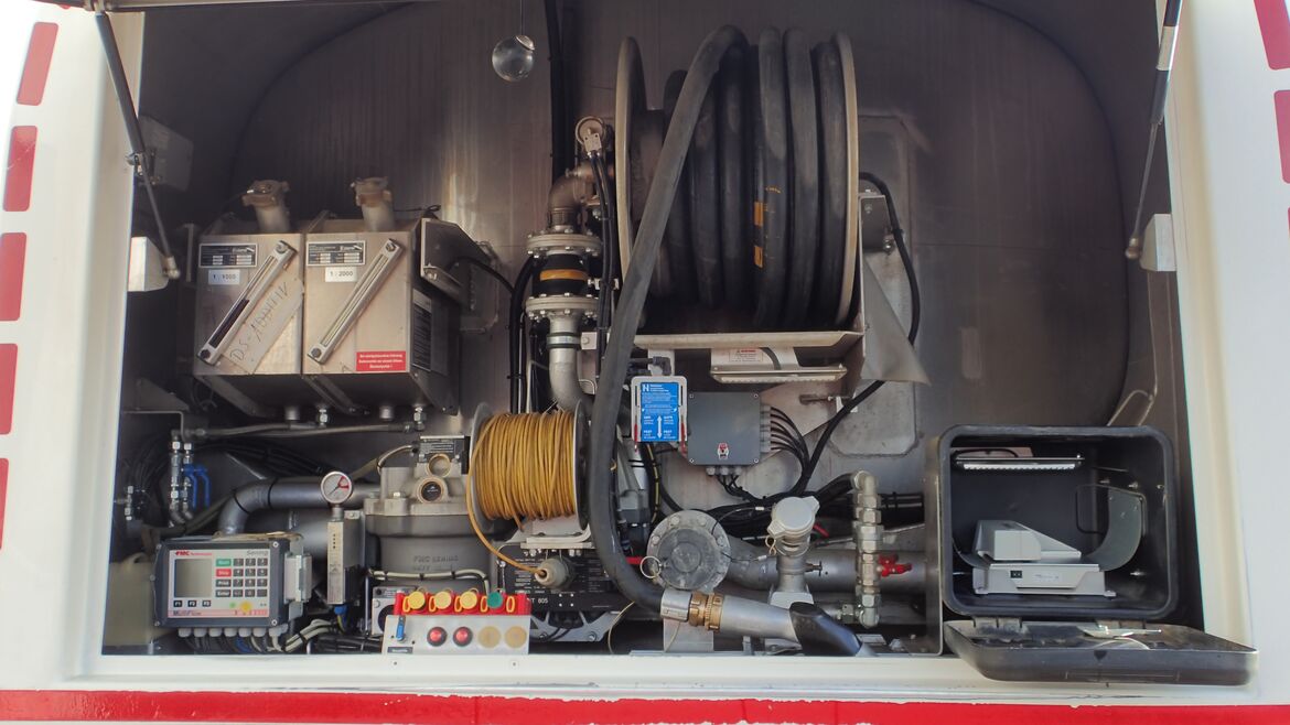 | Schlauchtrommel 2: | oben im Heckschrank, ca. 30 m DN 32 mit Automatik-Zapfpistole ZVA32 |